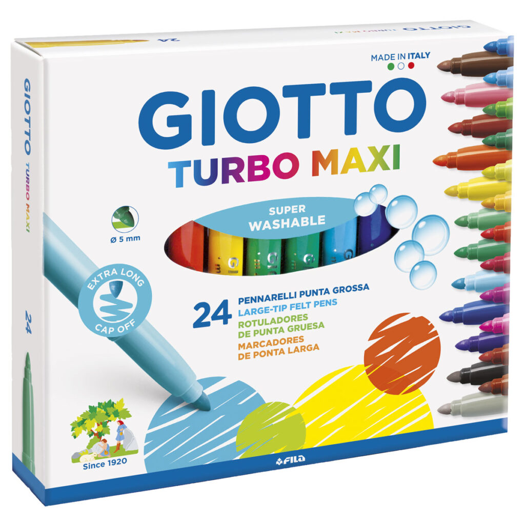 Giotton Turbo Maxi vahvat huopakynät sopivat erinomaisesti lasten käyttöön. Kynissä on paksu ja kestävä kärki, niistä saa tukevan otteen ja kynien suunnittelussa on huomioitu monta tärkeää turvallisuusseikkaa.