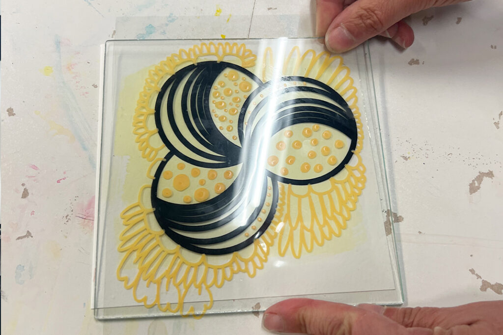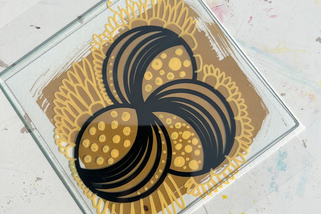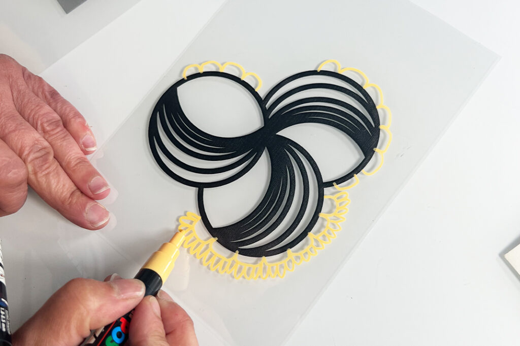 Vinkki! Voit käyttää myös esimerkiksi itse tekemiäsi tai valmiita sabluunoita kuvioinnissa, tai piirtää tai kirjoittaa suoraan kalvolle peittävällä tussilla.