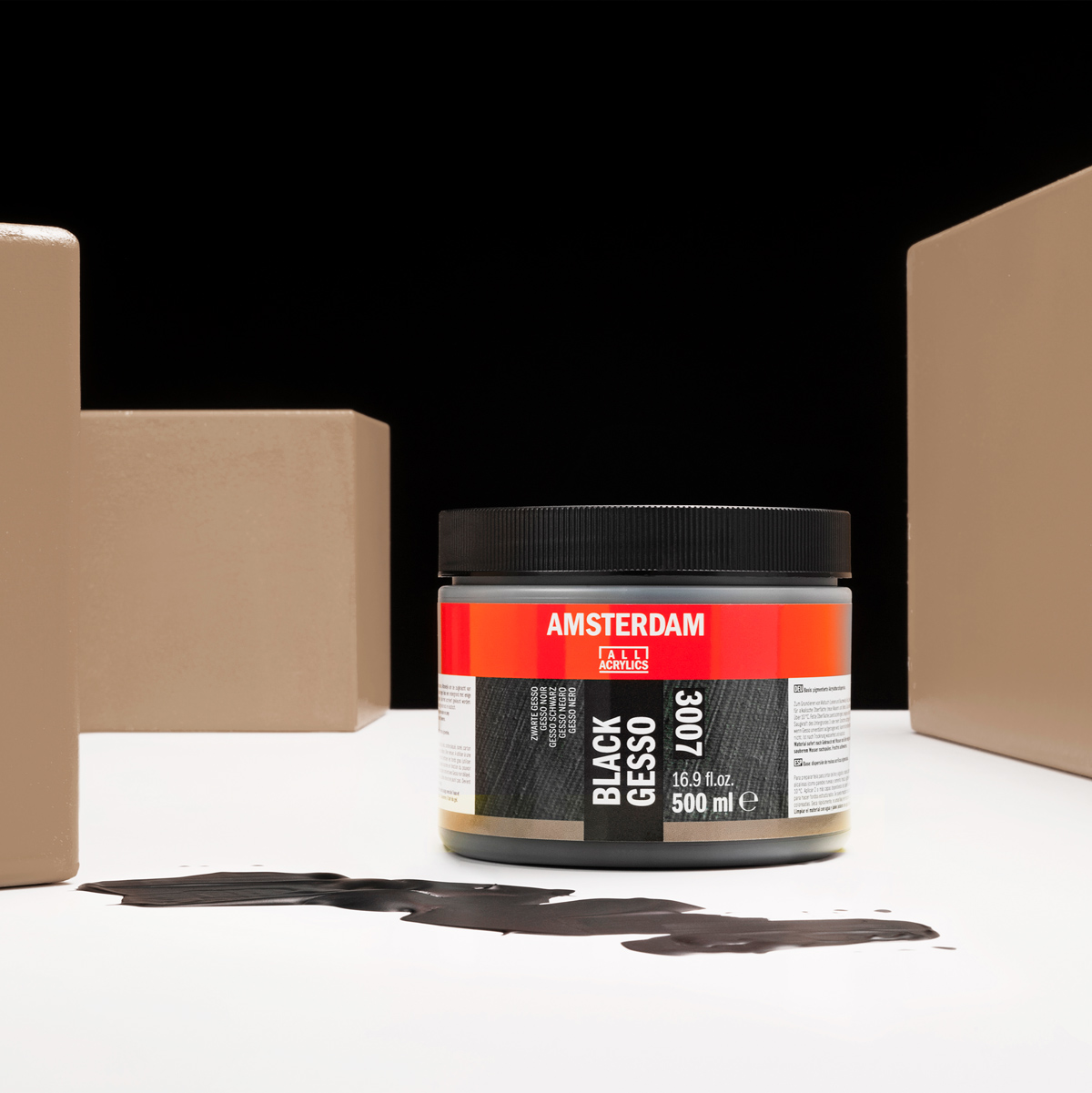 Royal Talensin mustaa Amsterdam-gessoa käytetään maalausalustojen pohjustamiseen. Gesso muodostaa kuivuttuaan vedenkestävän ja imukykyisen mattapinnan sekä erinomaisen tarttuvuuden, toimien oivallisena pohjana paitsi akryyliväreille myös öljyväreille. Akryylipohjaista gessoa voidaan ohentaa vedellä ja levittää joko ohuina kerroksina tai yhtenä paksuna kerroksena, jolloin saadaan enemmän tekstuuria. Voit myös sekoittaa gessoa akryyliväriin luodaksesi voimakkaita ja tummia värisävyjä.