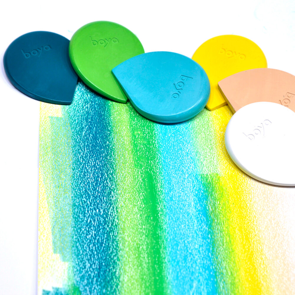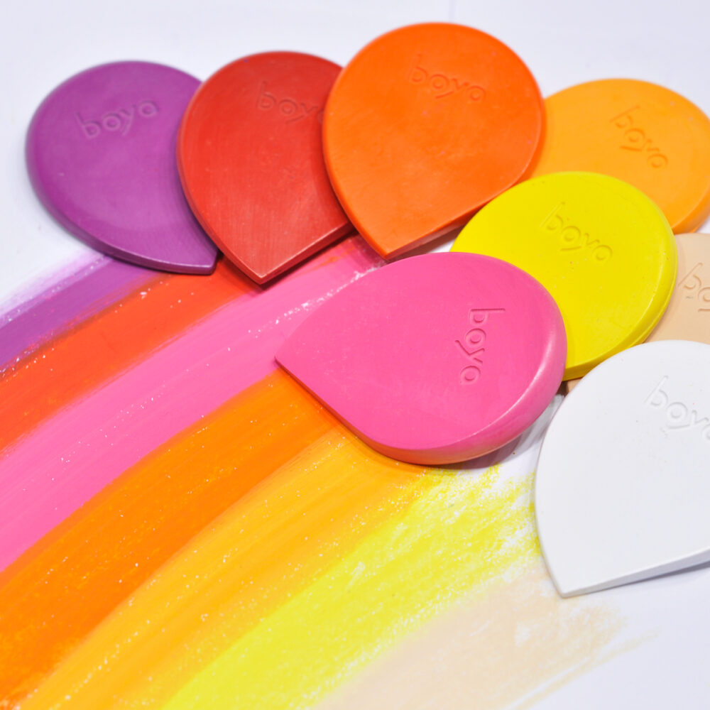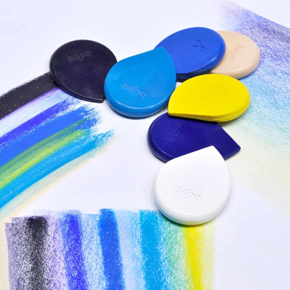 Siinä missä perinteisen kynän tai liidun käyttöä rajoittaa niiden muoto, Boya-vahaliidun ergonominen muotoilu on suunniteltu mahdollistamaan luonnollisempi ja ilmaisuvapaampi lähestymistapa piirtämiseen ja värittämiseen. Kaikki sarjan sävyt samassa rasiassa!