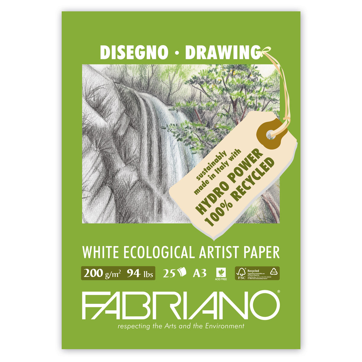 Fabriano Ecological Artist Paper on ekologinen ja taiteilijalaatuinen piirustuspaperi, joka on valmistettu 100 % kierrätyskuidusta. Kierrätyskuidun käyttö säästää 15 puuta jokaista tuotettua paperitonnia kohti.