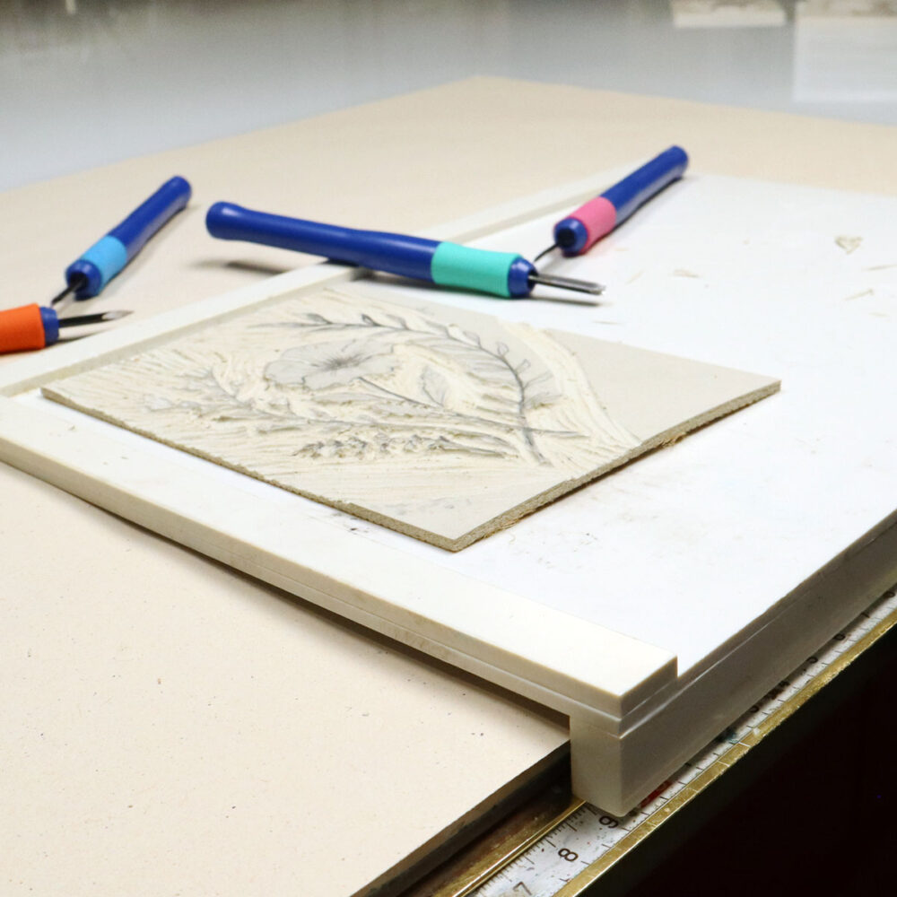 ABIG linokaiverrusalusta lisää merkittävästi työskentelyturvallisuutta. Kun kaivertajan ei tarvitse pitää kaiverrettavaa levyä käsin paikallaan, ei ole sitä riskiä, että kaiverrin työskennellessä lipsahtaisi ja vahingoittaisi levyä pitelevää kättä.