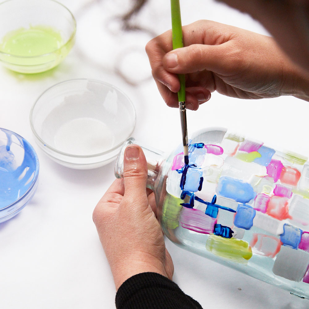 Liquitex Glass Medium -maalausaineella muutat tavallisen akryylivärin kestäväksi lasimaaliksi, jota voi käyttää niin keramiikalle, posliinille kuin lasille! Värin koostumuksesta tulee helposti ja tasaisesti levittyvä, eivätkä siveltimenvedot tai valumat erotu. Tuloksena on erittäin kiiltävä ja vedenkestävä pinta, joka kestää naarmuuntumista eikä halkeile.