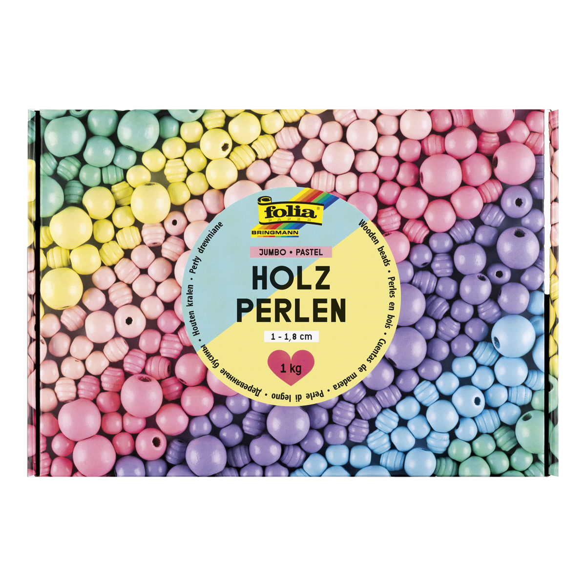 Folian riittoisa puuhelmilajitelma, joka pitää sisällään kokonaisen kilon verran pastellisävyisiä puuhelmiä. Reiälliset puuhelmet tulevat kuudessa eri sävyssä, kahdessa eri tyylissä (pyöreä ja sileä + poimutettu ja soikea) sekä useammassa eri koossa 1-1,8 cm välillä. Käytä koruaskartelussa rannekorujen ja kaulakorujen tekoon sekä muussa askartelussa esimerkiksi hauskojen hahmojen luomiseen!