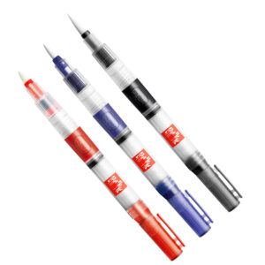 Kovamuovinen varsi ja helposti täytettävä vesisäiliö. Voit säädellä veden määrää tarkasti painelemalla siveltimen varressa olevaa, kumista nappia. Siveltimien kärjet ovat laadukkaita ja joustavia, ja pitävät muotonsa.