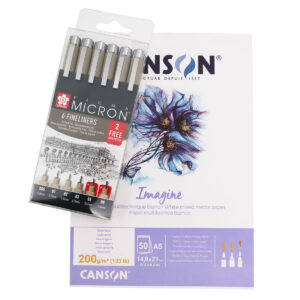 Pigma Microneilla piirrät pienet yksityiskohdat ja tarkat rajaukset myös akvarellimaalauksiin, sillä värin kuivuttua voit huoletta jatkaa maalaamista.