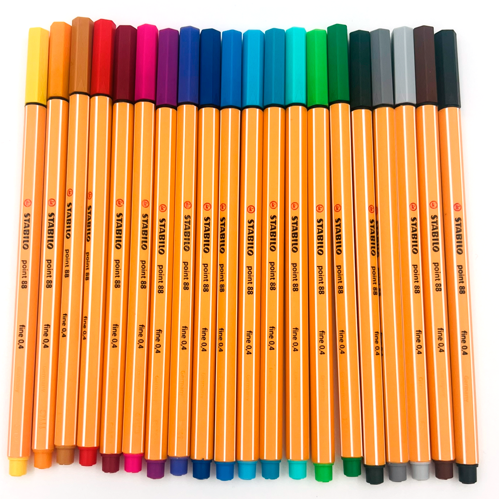 Stabilo Point 88 -kuitukärkikynä sopii niin lasten kuin ammattilaistenkin käyttöön. Kynässä on turvakorkki, joka ei aiheuta tukehtumisvaaraa nieltynä. Suosittu ja tunnettu kynä Euroopassa.