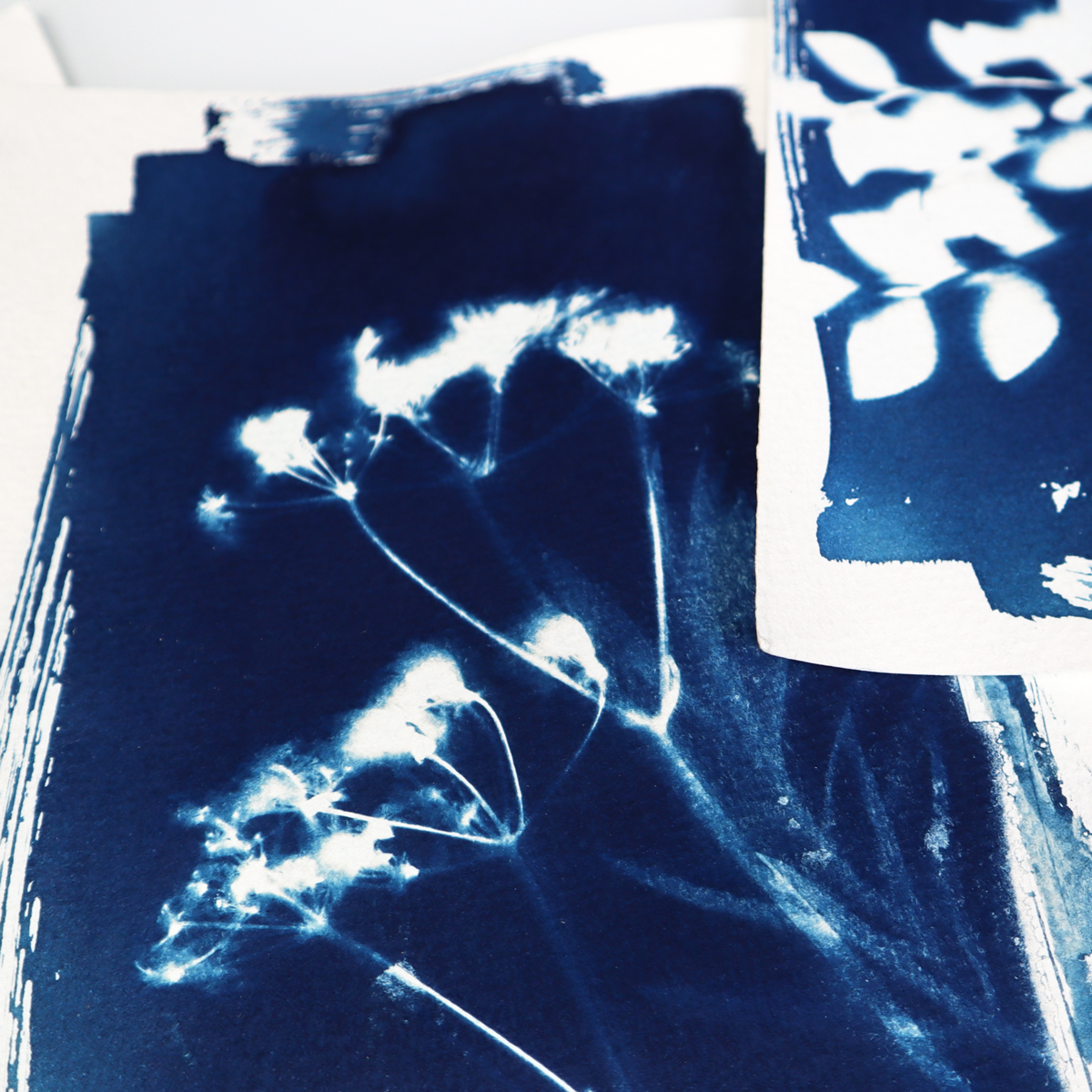 Syanotypia on vanha valokuvien vedostustekniikka, jonka keksi tieteilijä John Herschel vuonna 1842. Syanotypiassa luodaan yksivärisiä valokuvia ilman kameraa – lopputuloksena on kauniin preussinsininen vedos (blueprint). Jokainen printti on täysin uniikki, ja lopputulos on aina yllätys!