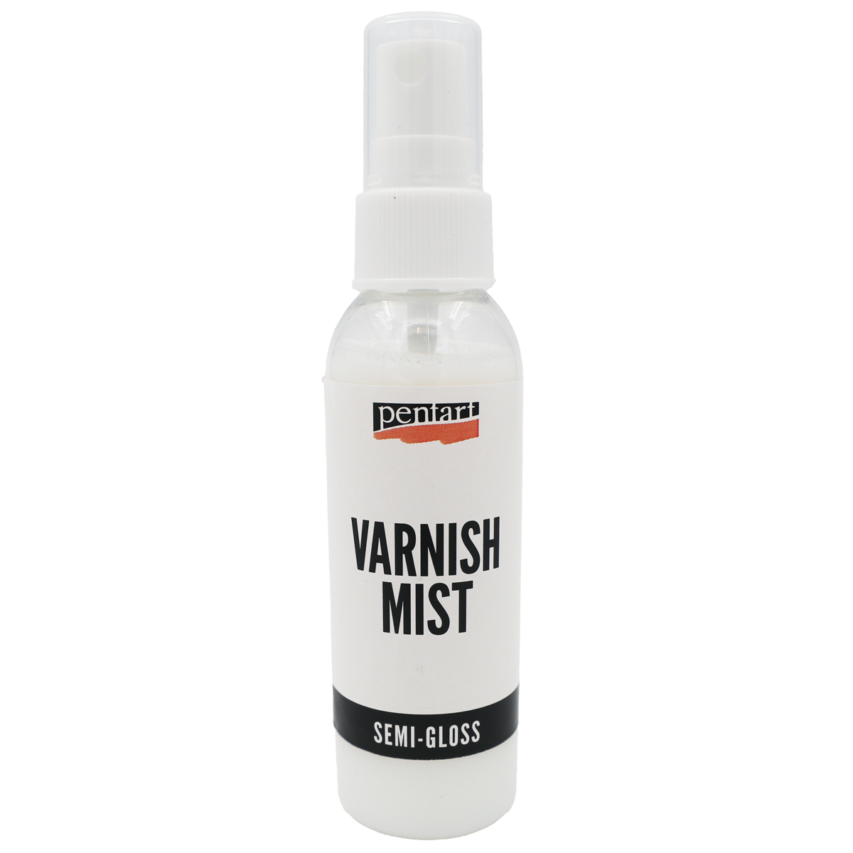 Pentartin vesipohjaisella Varnish Mist -suojasuihkeella suojaat sellaiset kolmiulotteiset pinnat, joiden käsittely siveltimellä levitettävällä vernissalla on hankalaa tai mahdotonta. Käytetään myös Media Ink alkoholimusteilla tehtyjen töiden sekä Mirror Mist -peilisuihkeilla käsiteltyjen pintojen suojaamiseen.